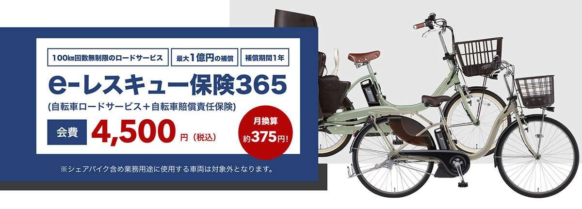 自転車ロードサービス+自転車賠償責任保険「e-レスキュー保険365」外出先での急なトラブルに対応!自転車賠償責任保険付きの安心サポート。>詳細